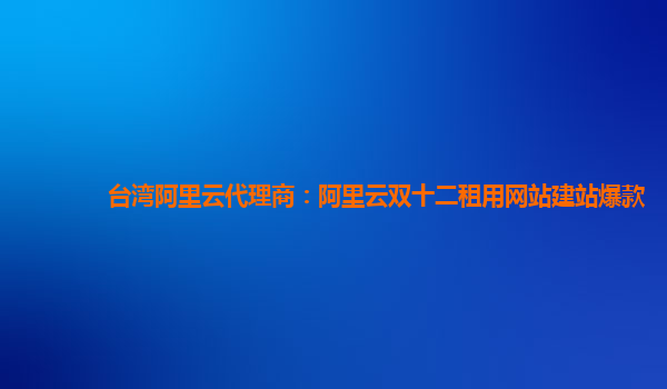 台湾阿里云代理商:阿里云双十二租用网站建站爆款