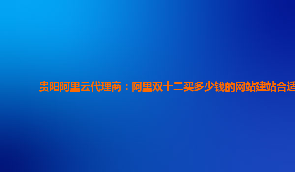 贵阳阿里云代理商推荐:阿里双十二买多少钱的网站建站合适