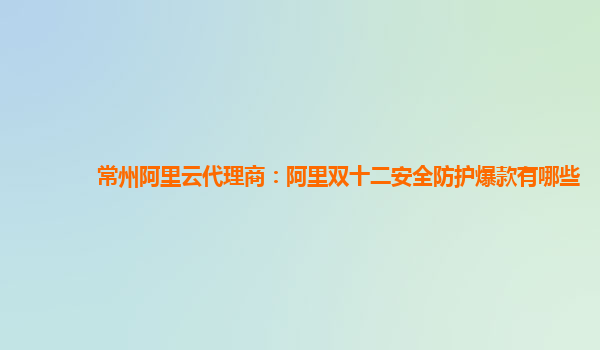 常州阿里云代理商:阿里双十二安全防护爆款有哪些
