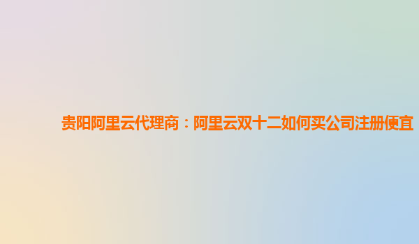 贵阳阿里云代理商:阿里云双十二如何买公司注册便宜