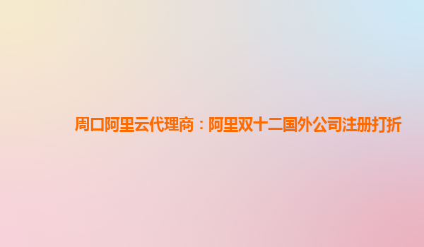 周口阿里云代理商:阿里双十二国外公司注册打折