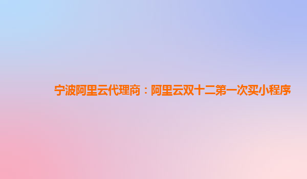 宁波阿里云代理商:阿里云双十二第一次买小程序