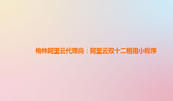 榆林阿里云代理商:阿里云双十二租用小程序