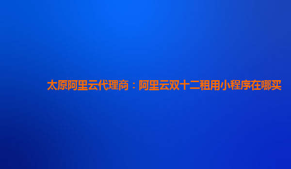 太原阿里云代理商:阿里云双十二租用小程序在哪买