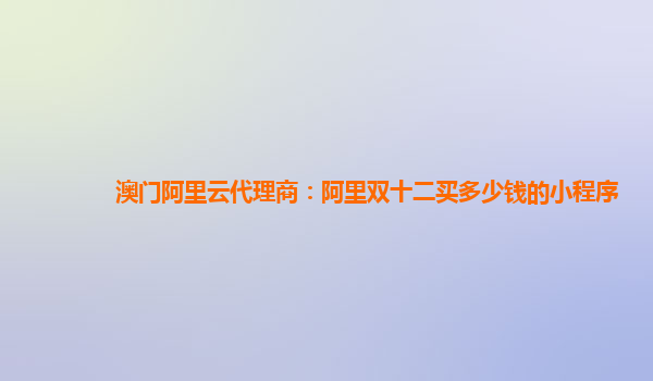 澳门阿里云代理商:阿里双十二买多少钱的小程序