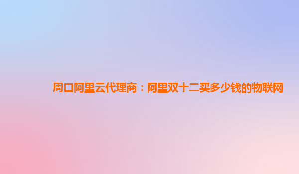 周口阿里云代理商:阿里双十二买多少钱的物联网