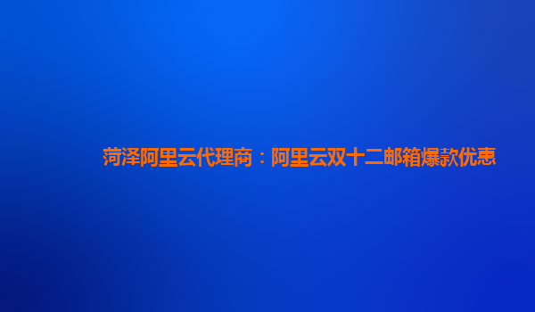 菏泽阿里云代理商:阿里云双十二邮箱爆款优惠