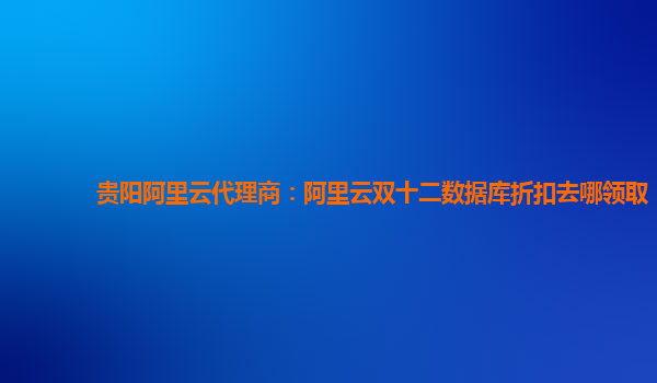 贵阳阿里云代理商:阿里云双十二数据库折扣去哪领取