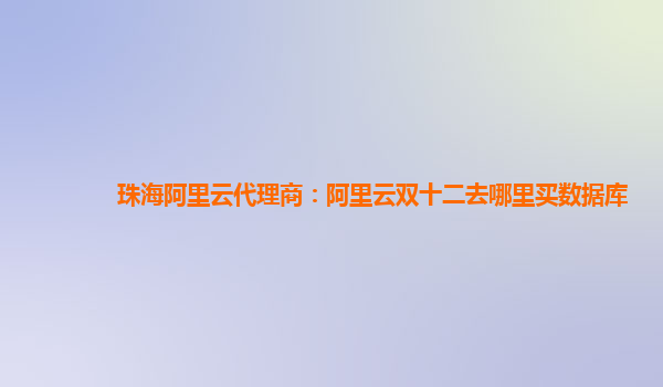 珠海阿里云代理商:阿里云双十二去哪里买数据库