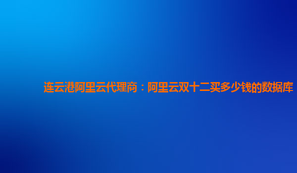 连云港阿里云代理商:阿里云双十二优惠活动数据库购买指南