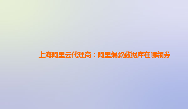 上海阿里云代理商:阿里爆款数据库在哪领券