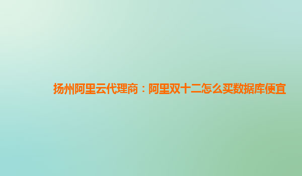 扬州阿里云代理商:阿里双十二怎么买数据库便宜