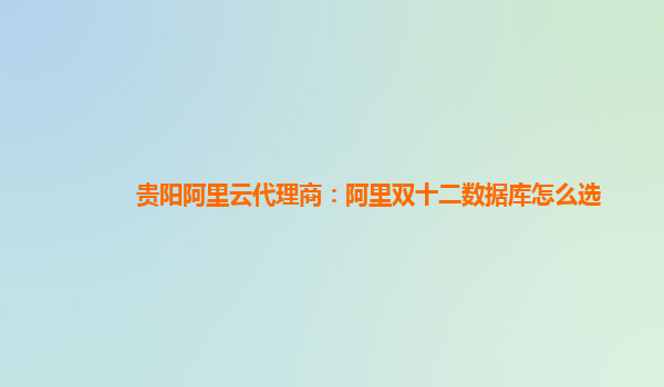 贵阳阿里云代理商:阿里双十二数据库怎么选
