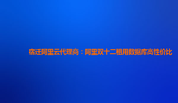 宿迁阿里云代理商:阿里双十二租用数据库高性价比