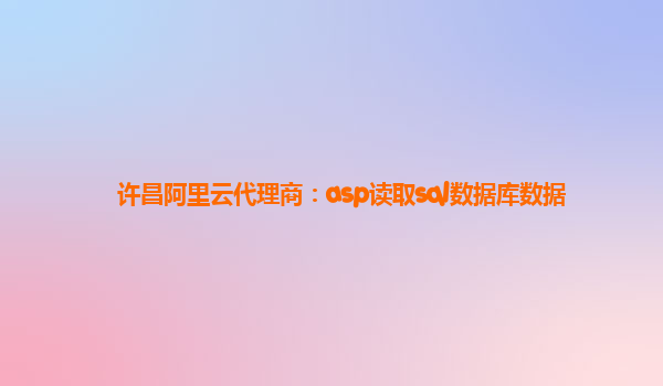 许昌阿里云代理商:使用ASP读取SQL数据库数据