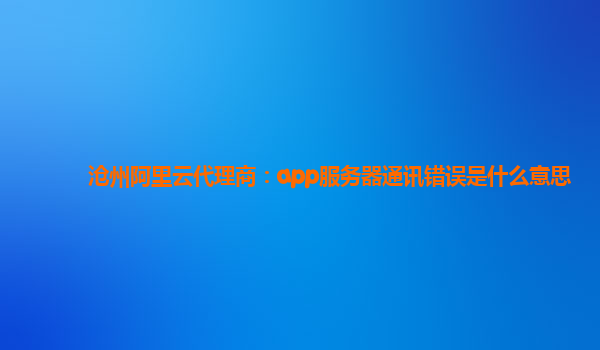沧州阿里云代理商:app服务器通讯错误解决方案