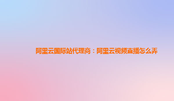 阿里云国际站代理商:阿里云视频直播怎么弄