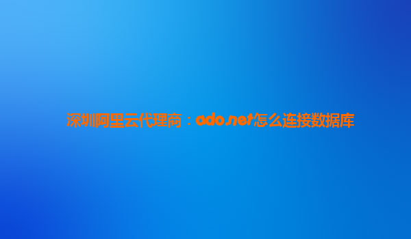 使用ADO.NET连接数据库:深圳阿里云代理商的优势与好用之处