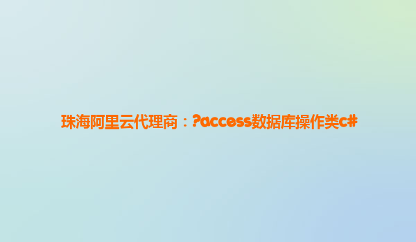 珠海阿里云代理商提供了丰富的阿里云产品和服务,结合?Access数据库操作类C#,可以实现灵活高效的数据库应用开发和运维。利用阿里云的优势,可以提升数据库的性能、可用性和安全性,为用户的业务应用提供更可靠的支持。