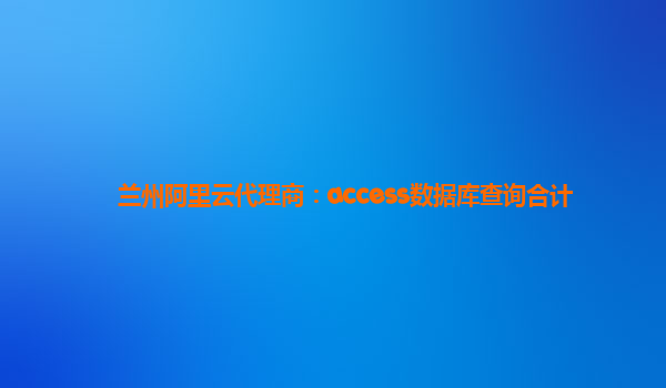 标题中的"Access数据库查询合计"表明了本文将探讨在兰州地区阿里云代理商的背景下,如何利用Access数据库进行数据查询和统计分析,以及结合阿里云的优势来实现更加高效可靠的业务运营。