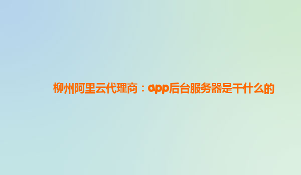 作为柳州阿里云代理商,我们可以充分利用阿里云的优势来搭建和管理App后台服务器: