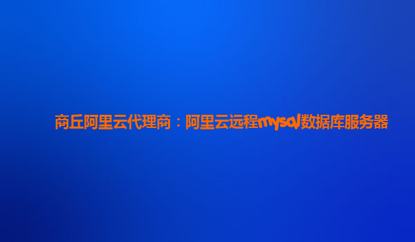 商丘阿里云代理商:阿里云远程MySQL数据库服务器