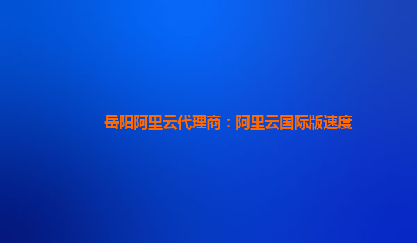 岳阳阿里云代理商:阿里云国际版速度