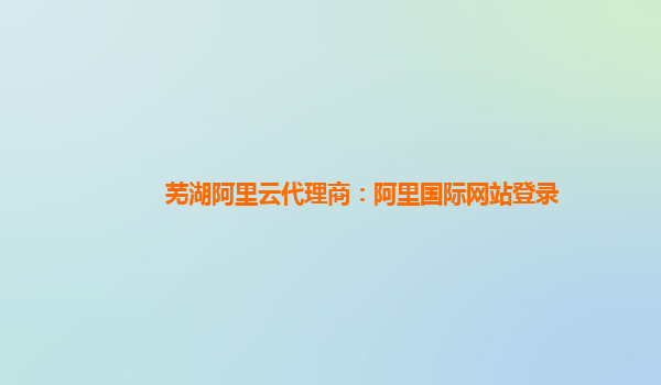 芜湖阿里云代理商:阿里国际网站登录
