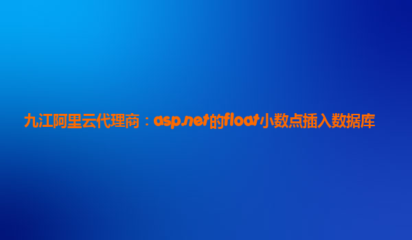 作为九江地区的阿里云代理商,我们致力于为客户提供优质的云计算服务和解决方案。在ASP.NET开发中,处理浮点数数据并将其插入数据库是常见的任务之一。然而,由于浮点数的特殊性,可能会遇到一些问题,尤其是在与数据库交互时。