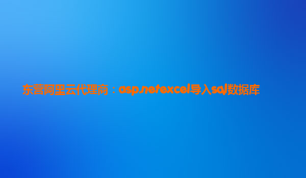 东营阿里云代理商:ASP.NET Excel导入SQL数据库