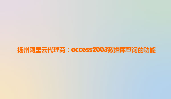 作为扬州地区的阿里云代理商,我们专注于帮助客户提升数据管理和查询效率。在这篇文章中,我们将重点介绍access2003数据库查询的功能,并为您解读阿里云的优势。