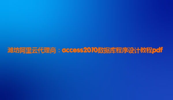 潍坊阿里云代理商:access2010数据库程序设计教程pdf