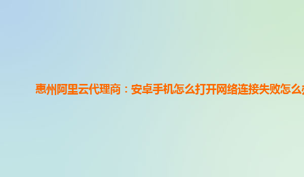 作为惠州阿里云代理商,我们深知网络连接对现代生活的重要性。当您在安卓手机上遇到网络连接失败的问题时,我们提供以下简单明了的解决方法,同时结合阿里云和阿里云代理商的优势,让您快速解决问题。