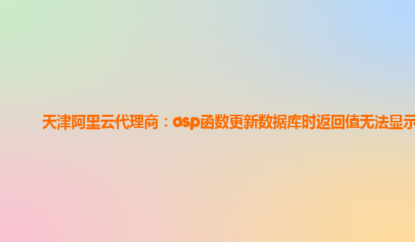 在天津地区作为阿里云代理商,使用ASP函数来更新数据库时,返回值无法显示。本文将结合阿里云的优势和对标题内容的分析来解决该问题。
