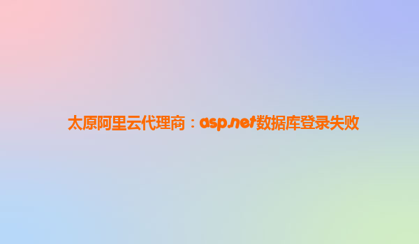 太原阿里云代理商:携手克服ASP.NET数据库登录失败挑战
