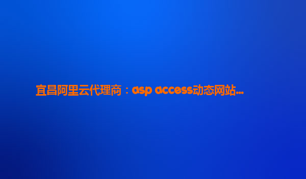 宜昌阿里云代理商:ASP+ACCESS动态网站解决方案,为您量身定制高效业务平台