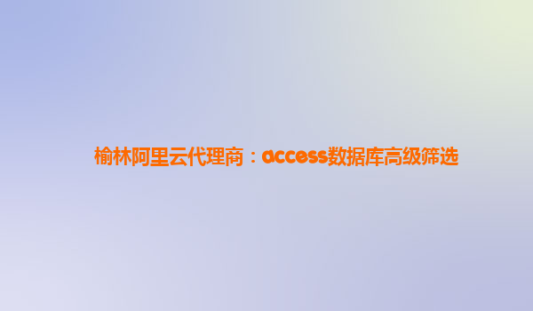 标题:榆林阿里云代理商助力企业高效运用Access数据库高级筛选功能