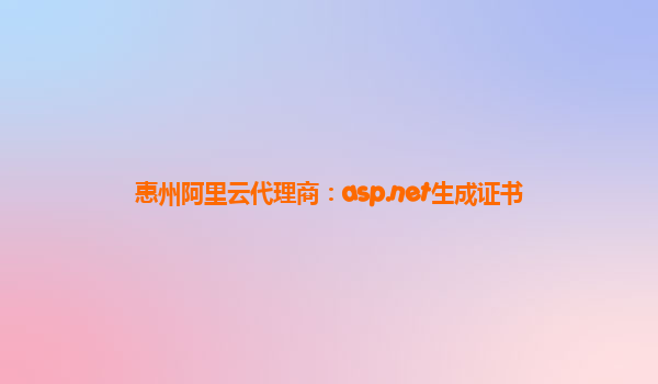 惠州阿里云代理商:利用ASP.NET生成证书,轻松实现云端安全