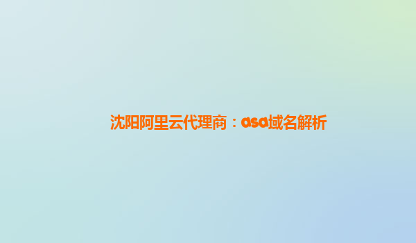 沈阳阿里云代理商:asa域名解析
