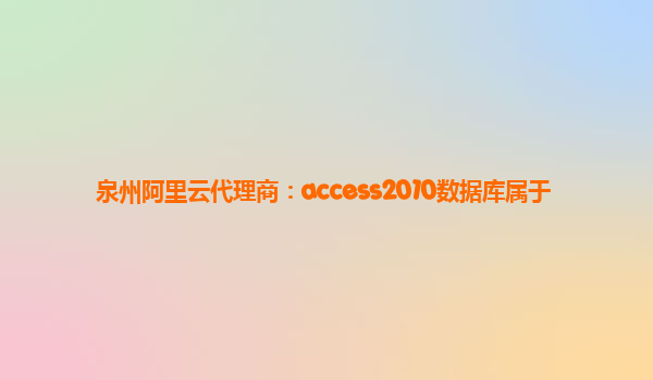 对象存储中,可以保证数据的安全性和持久性。</li>\n <li><strong>远程访问:</strong>通过阿里云的远程桌面服务,可以方便地访问和管理存储在云端的Access2010数据库。</li>\n <li><strong>数据迁移:</strong>可以将Access2010数据库的数据迁移到阿里云的关系型数据库服务(RDS)中,享受云数据库的高性能和高可用性。</li>\n <li><strong>与云服务集成:</strong>Access2010可以与阿里云的其他服务集成,如分析型数据库、数据可视化工具等,提升数据处理和分析能力。</li>\n</ul>\n\n<h2>四、总结</h2>\n<p>泉州