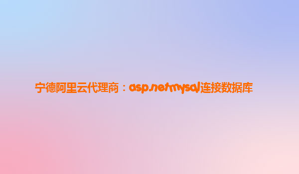 使用ASP.NET连接MySQL数据库的宁德阿里云代理商