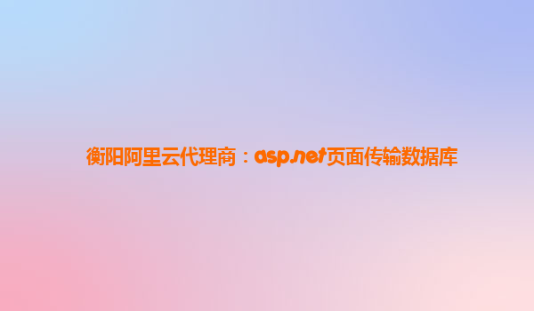 衡阳阿里云代理商:ASP.NET页面传输数据库