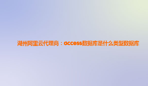 湖州阿里云代理商:了解Access数据库类型及其优势