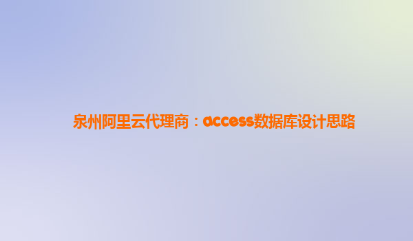 泉州阿里云代理商:Access数据库设计思路