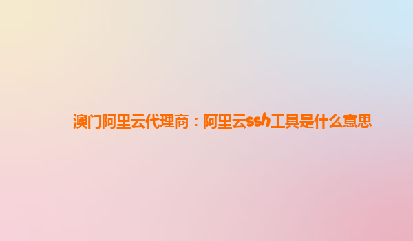 澳门阿里云代理商:阿里云SSH工具是什么意思