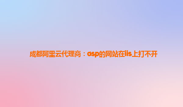 解决成都阿里云代理商ASP网站在IIS上打不开的问题