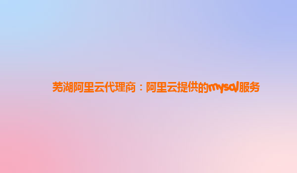 芜湖阿里云代理商:阿里云提供的MySQL服务