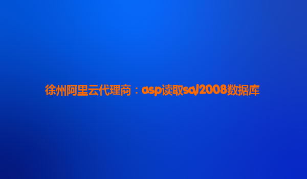 徐州阿里云代理商:使用ASP读取SQL Server 2008数据库的优势
