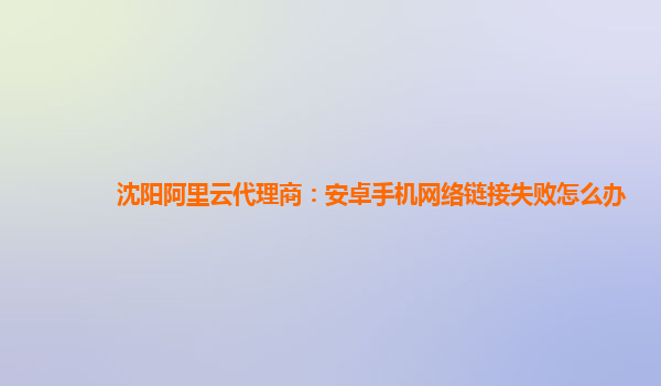 解决安卓手机网络连接失败问题——沈阳阿里云代理商的解决方案