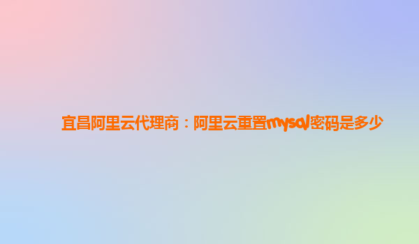 宜昌阿里云代理商:阿里云重置MySQL密码是多少